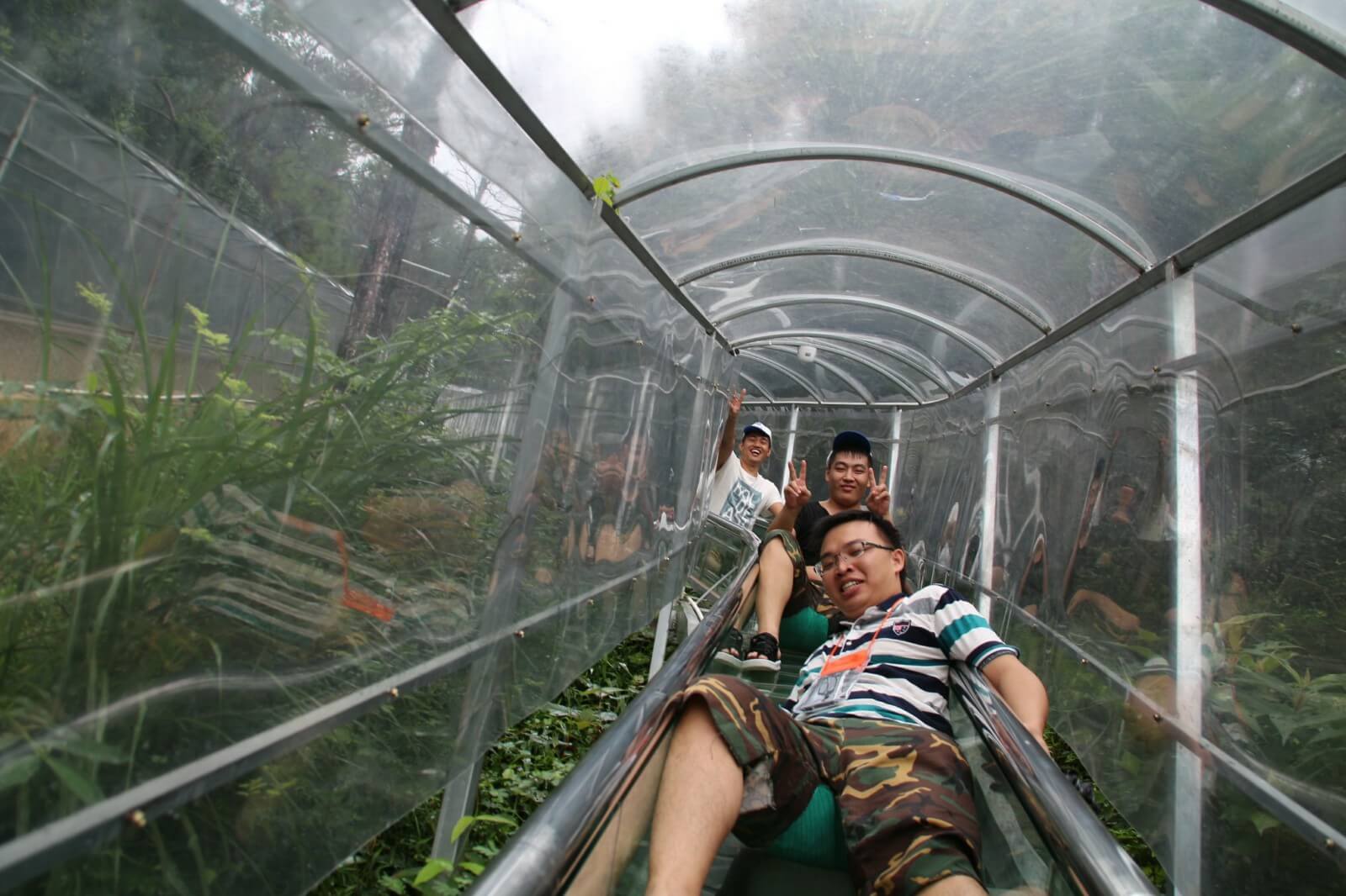 大約經(jīng)過半小時的登山,便抵達(dá)了驚魂玻璃橋及與之相依的飛龍滑道,驚魂玻璃橋的空中廊橋全長接近200米,懸空離地180米左右,對于有恐高癥的人來說,不畏是一處挑戰(zhàn)自我的好地方。不過,再怎么害怕,再通過全長達(dá)500多米的飛龍滑道到達(dá)山下之后,也就不存在了,長長的滑道可是讓我們重新體驗了一把童年的滑梯享受。另外,景區(qū)還設(shè)有水上樂園、空中漂流及水上拓展項目。