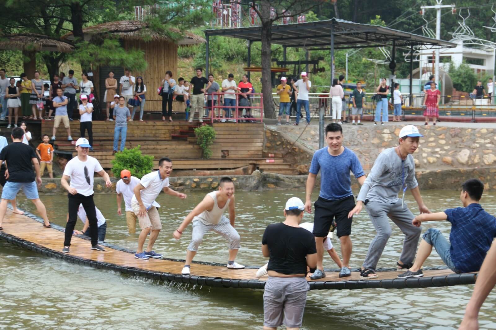 我們懷揣著忐忑與激動的心情加入了漂流的隊伍中,湍急的流水時而將我們淹沒,時而將我們拋起,帶著我們在狹窄的河道橫沖直撞,讓我們親身體驗了漂流的刺激。當(dāng)然,河道也有緩沖流域,在這我們可以用水槍及水瓢打水戰(zhàn),除隊友以外人員均可作為水戰(zhàn)對手,你一槍,我一瓢,玩得不亦樂乎。