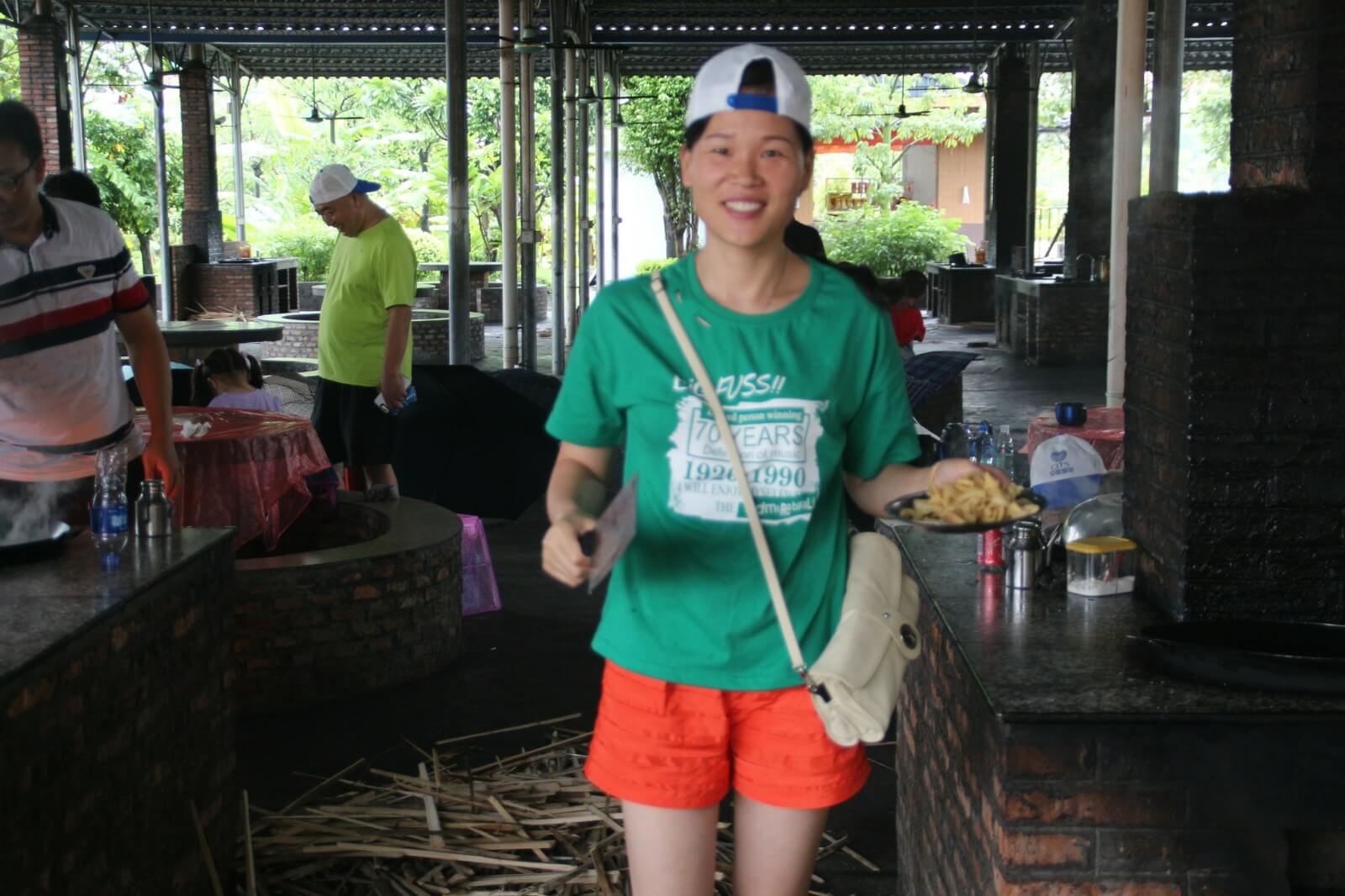 第三天,我們跟隨生物鐘醒來,相比前兩天,今天的活動時間相對寬裕,早上九點多起來吃過酒店特意留的早餐我們啟程去往郊區(qū)野炊,野炊自給自足,一切吃的都要自己動手在公司我們是職員現(xiàn)在我們是廚師大家都磨拳擦掌的行動起來,洗菜的、掌勺的、打下手的、添柴火的,不一會兒一盤色香味俱全的菜擺在桌上沒多久桌上已經(jīng)是好幾道菜了有炒蛋、冬瓜湯、爆炒雞塊、南瓜片、炒青菜....,每道菜都富有不同的特色我拿起了手中的相機(jī),將這一刻留在了鏡頭之中,大家相互顯無比親近,雖然只有這短短的三天。